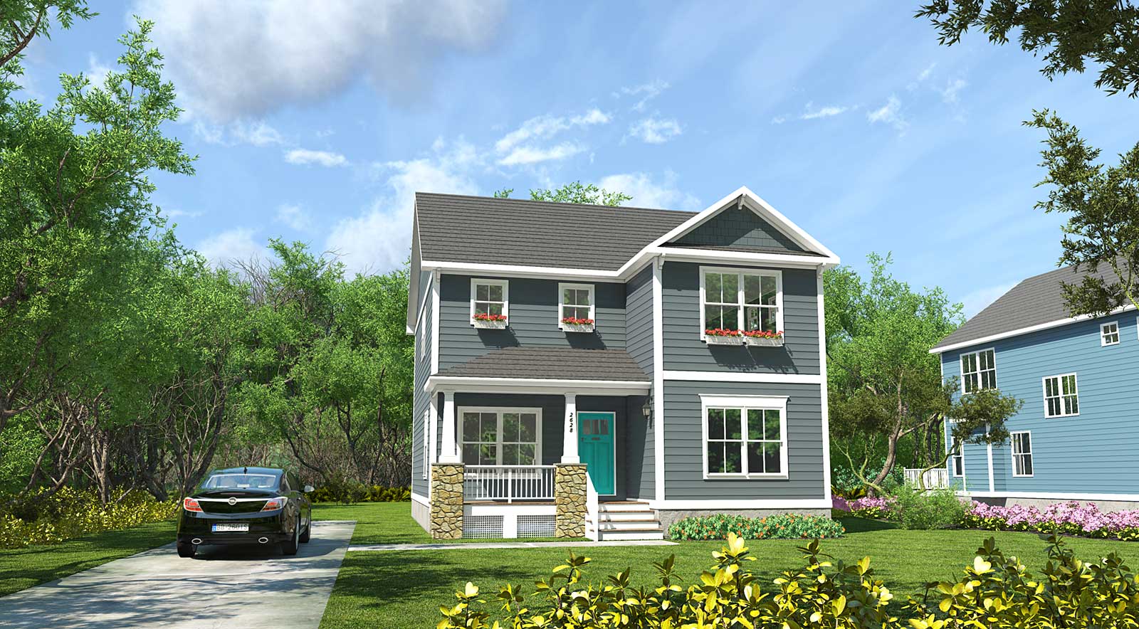 Rendering of new residence. Complete build in Max. Lagniappe Homes, NC